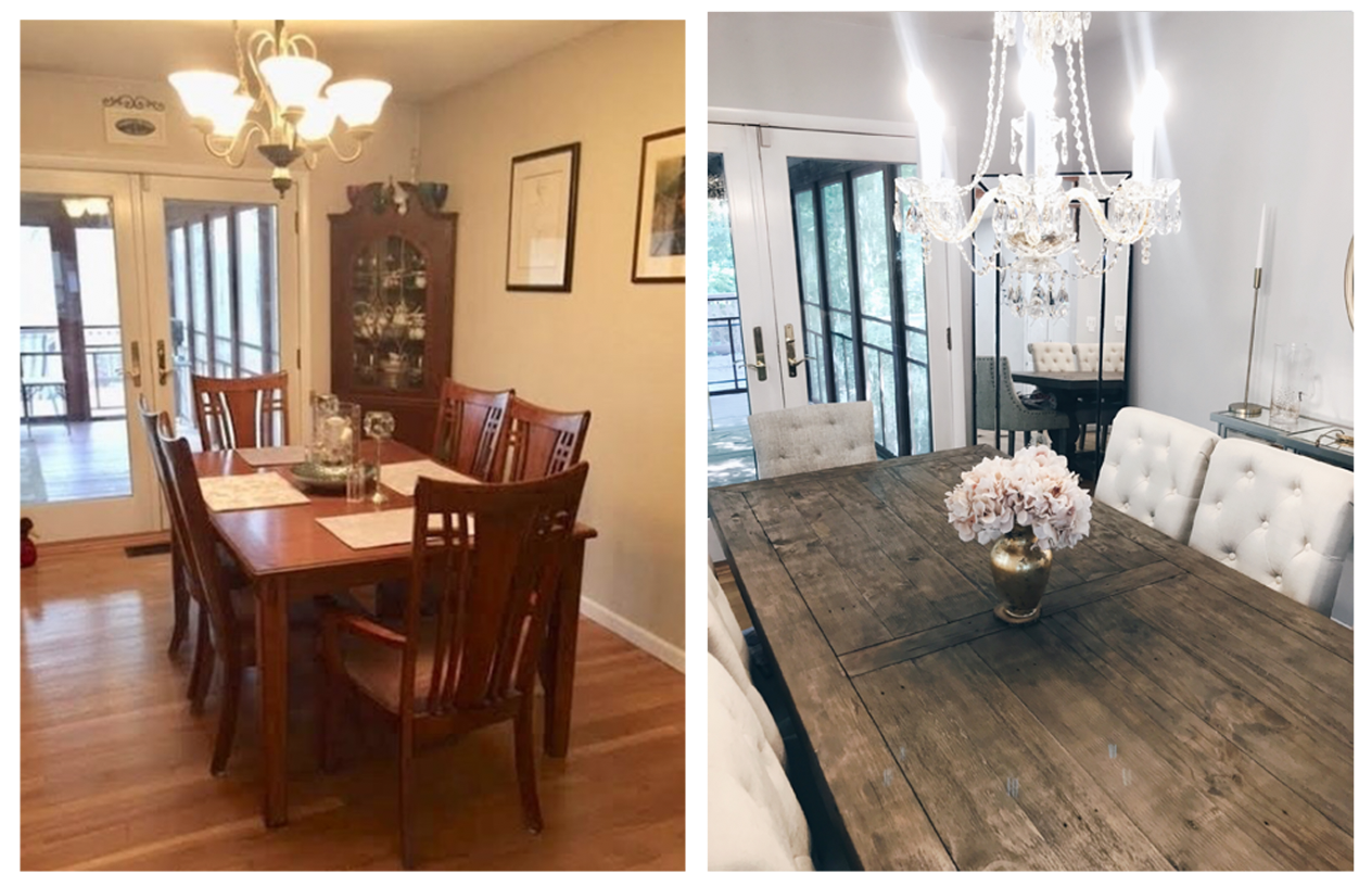 First up – the glamorous chandelier change that completely leveled-up the dining room: