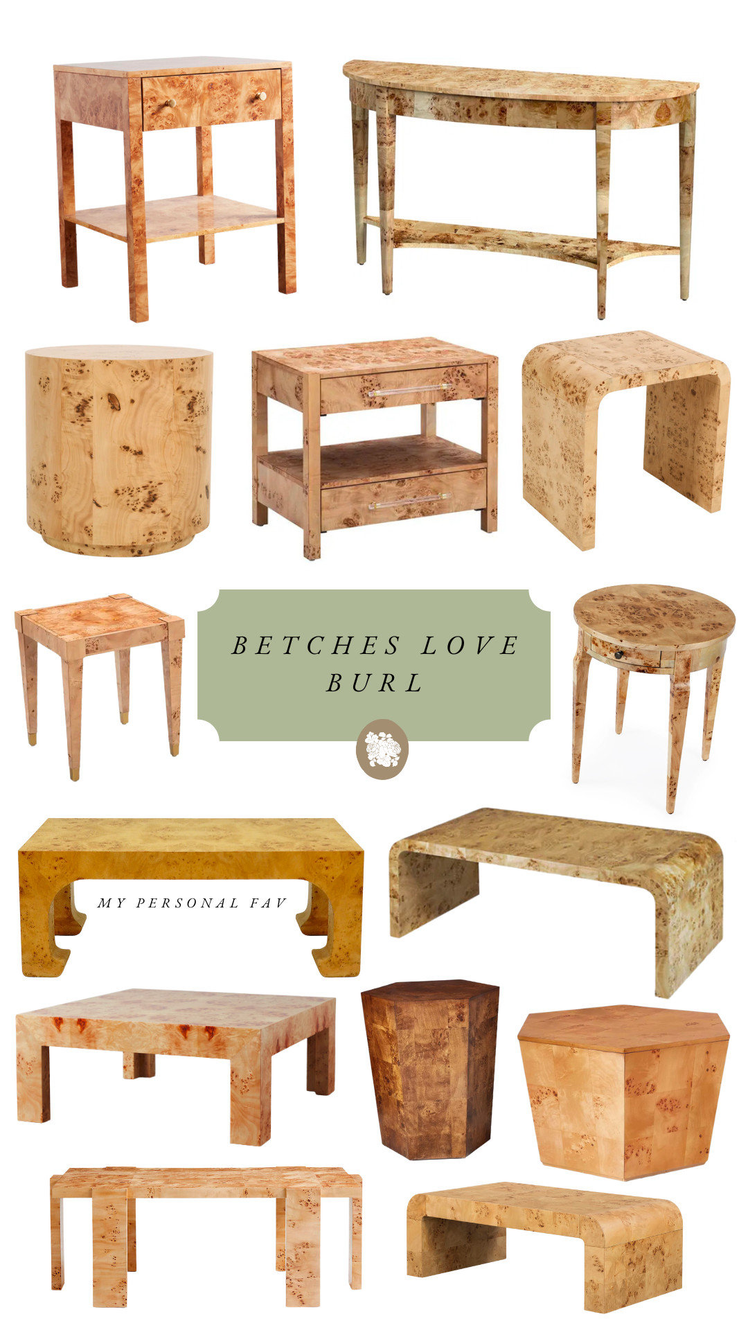 Since we made our own burl coffee table a few years ago, I’ve seen so many new stunning burl pieces on the market, like this Worlds Away coffee table which I actually love more than their waterfall table that we tried to replicate with our DIY (the DIY table has super sharp edges, so we gave it to our parents for the time being).